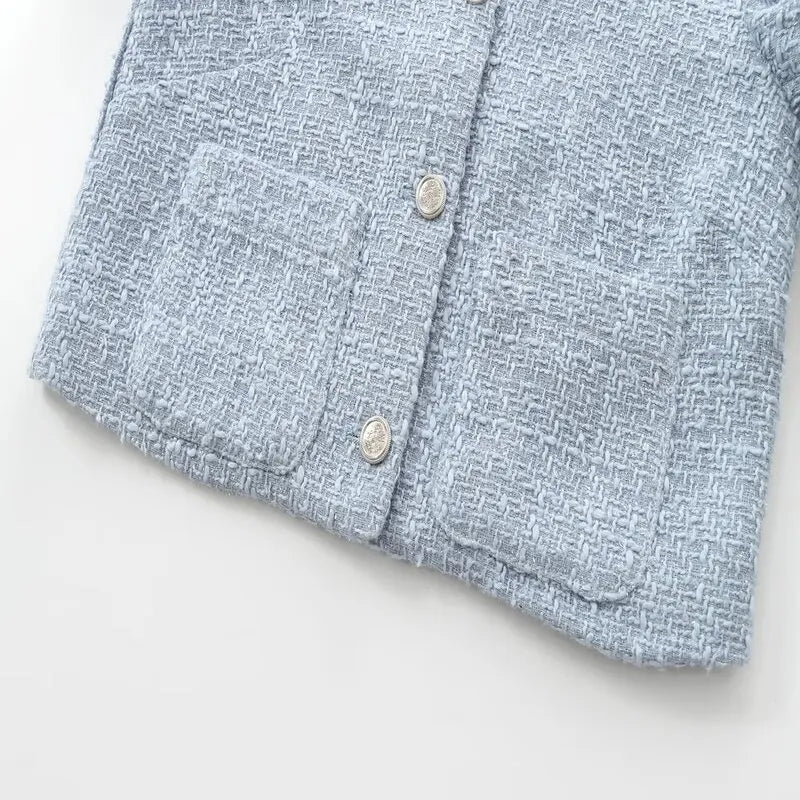 Herbst Neue Damen Faion Mantel Grob Weben Runde Ne Oberbekleidung Kleine Fraance Sle Jaet Vielseitig Gerade Schnitt